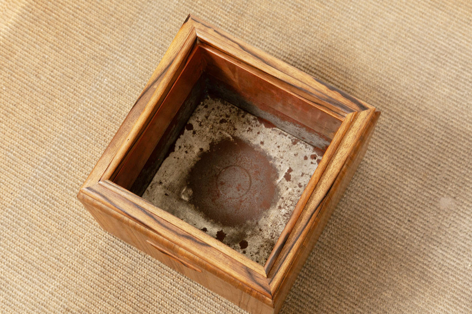 内部は使用感がありますが、暖房の熱源として利用するよりはじんわりと温かい小さな炭火でゆっくりと癒しの時間を過ごすための火鉢としては十分な状態です。